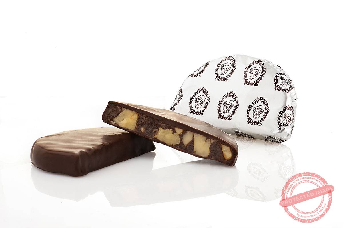 Склад: шоколадний кувертюр, шоколадний бісквіт, праліне, волоські горіхи .